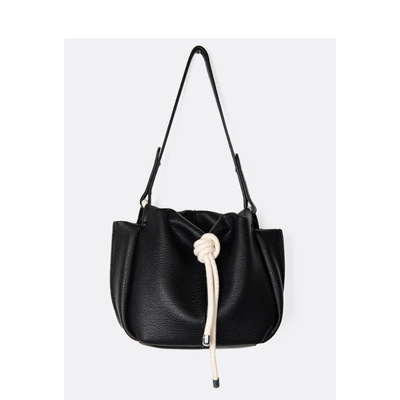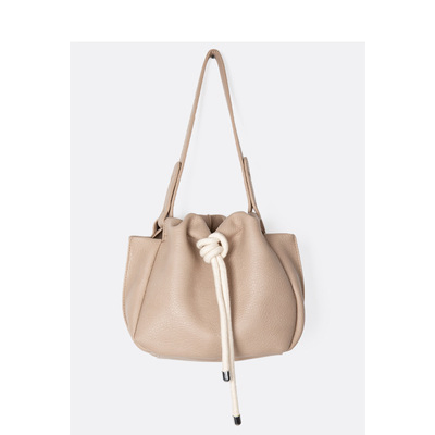 Soft Pebbled Leather Raw Edge Bucket Tote Lady Handbag