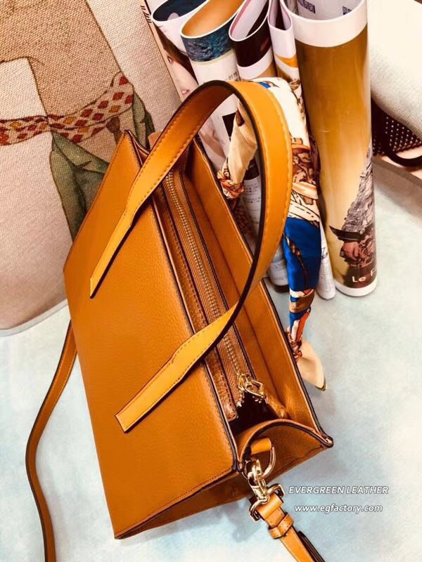 Soft Pebbled Leather Raw Edge Bucket Tote Lady Handbag