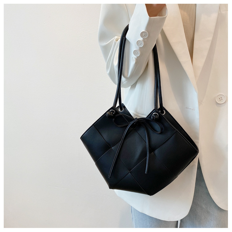 Soft Pebbled Leather Raw Edge Bucket Tote Lady Handbag