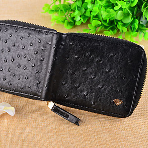 Long Cowhide Leather Purse Multi-Clip Clutch for Women