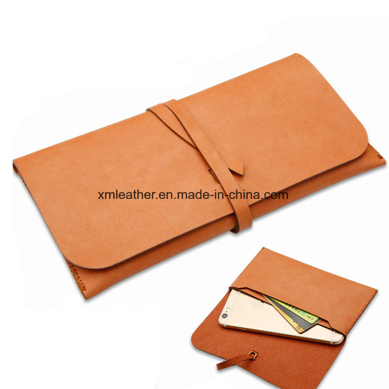 Long Cowhide Leather Purse Multi-Clip Clutch for Women